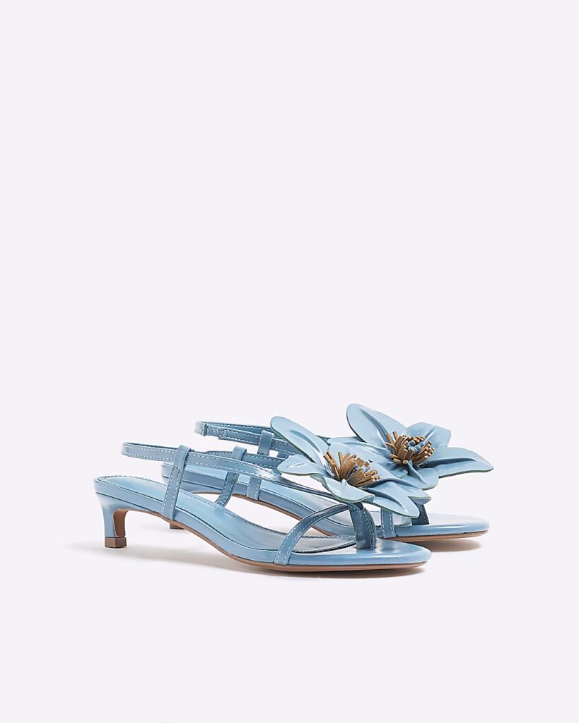 women’s feet wearing strappy summer sandals, photographed against a blue ocean backdrop.
