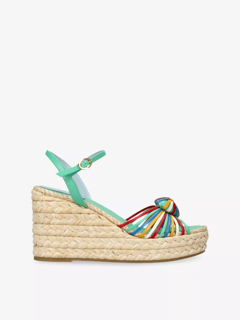 Perfect with linen dresses now; layered knits and woven bags in September.
