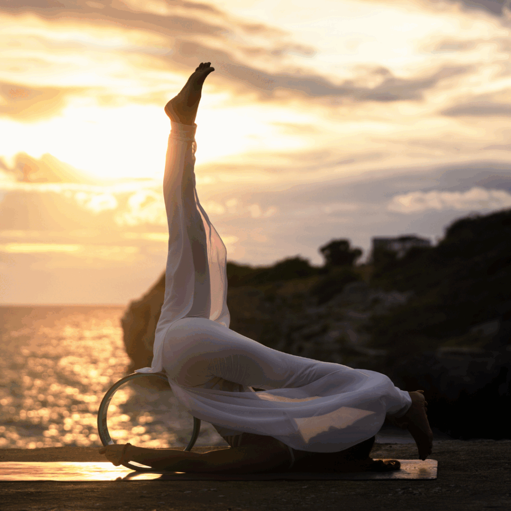 Alt text: Daily yoga ritual with yoga wheel and inner peace