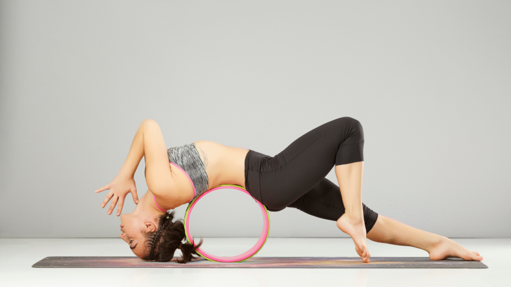 If you’ve ever struggled to do deep backbends or open your chest without straining, this is the bridge. The yoga wheel stretches support you while your body relearns its own grace.